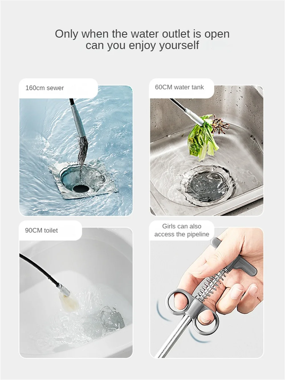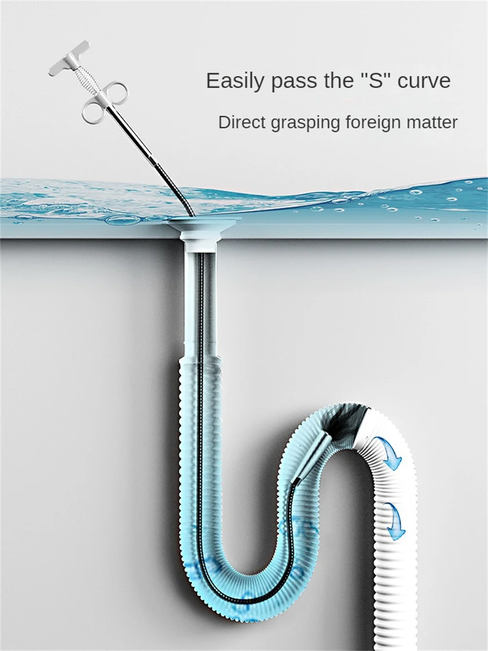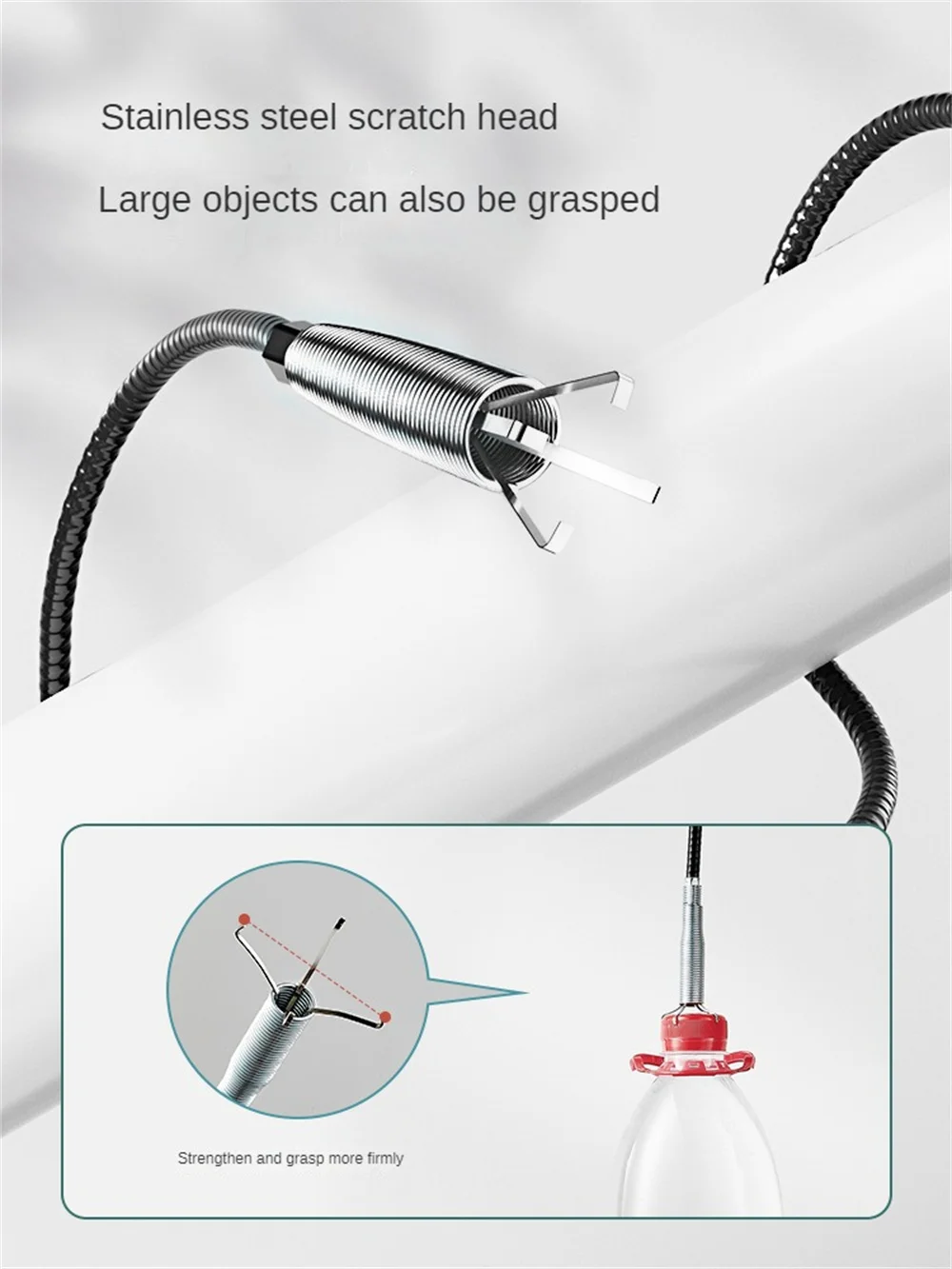 It can take out gold and silver jewelry and hair from the floor drain. It is very suitable for cleaning bathrooms, kitchens, sinks, bathtubs, pipes, drains, sewers and other places that are often blocked. The multi-tooth drain snake effectively catches hair, food and other blockages.