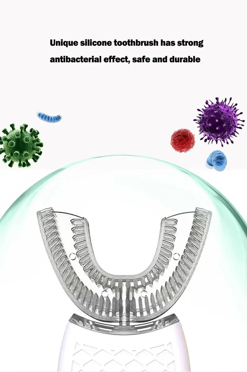 (4) Unique U-shape Bite Design:U-shaped bite is designed to fit the mouth shape,can clean the surface and interior of the teeth in all directions.