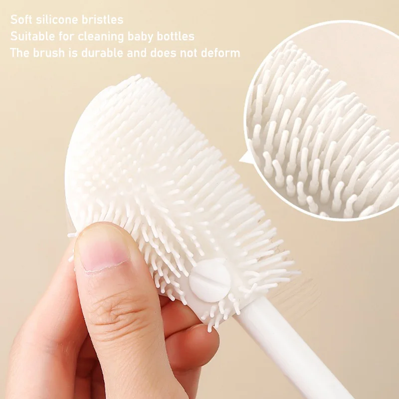 ●The brush head is made of soft silicone material that can be bent, and it fits tightly to the bottom of the bottle 360 ° without dead corners during the cleaning process to clean dirt
