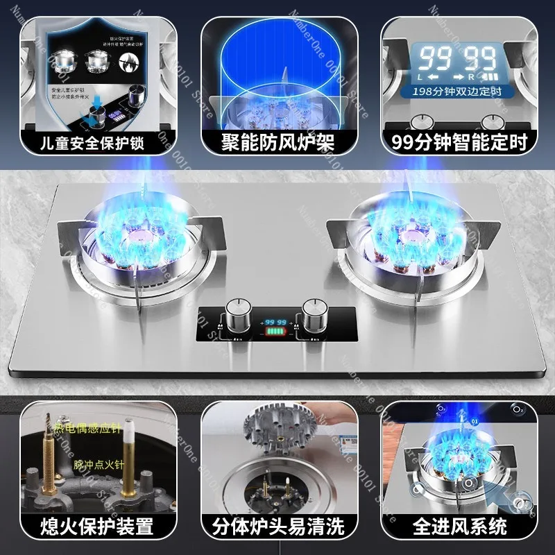 Stainless steel gas stove, built-in double stove, liquefied gas stove